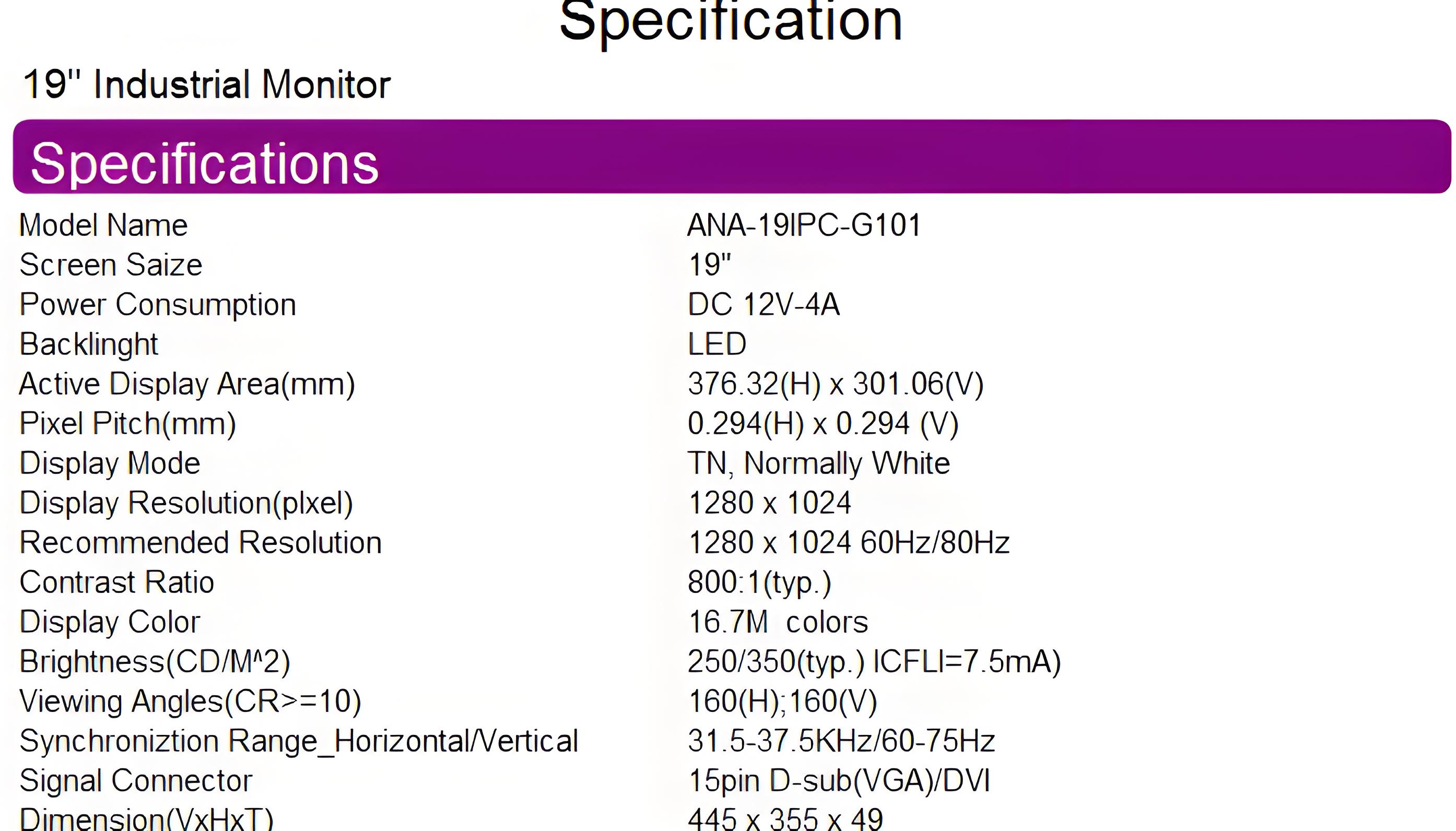 产品特点: 尺 寸: 19寸 分辨率: 1280X1024 (4:3) 1440X900 1920X1080 ; 可视角: 85/85/85/85(L/R/U/D); 颜色: 16.7M; 亮度: ≥350cd/㎡; 响应时间: 5ms。 工作温度:30~70C 电容触摸点数:10点 电阻触摸点数: 1点